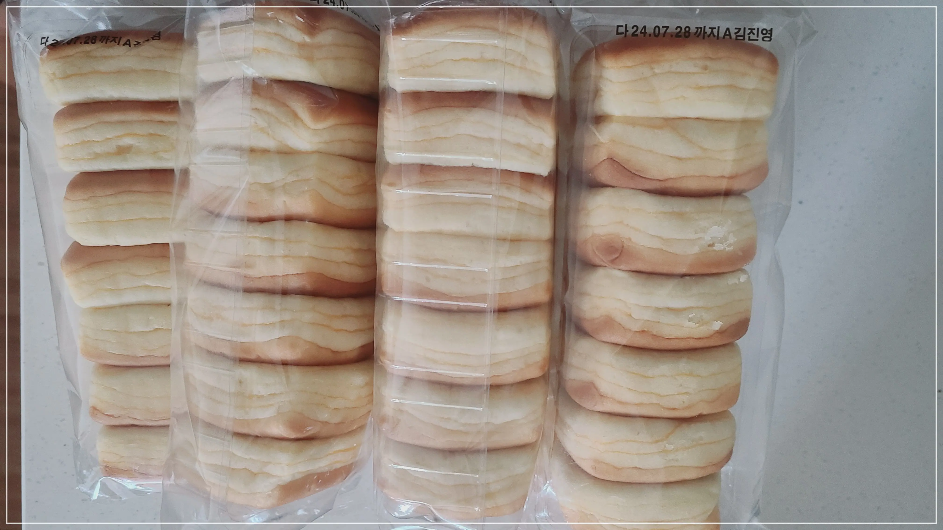 한 봉지 가득 들어 있는 모닝빵의 가성비는 정말 따라올 수 없어요. 냉동실 두고 에어프라이기에 살짝 구워 주면 간편 간식이 되기 때문에 쟁여두기 좋아요.