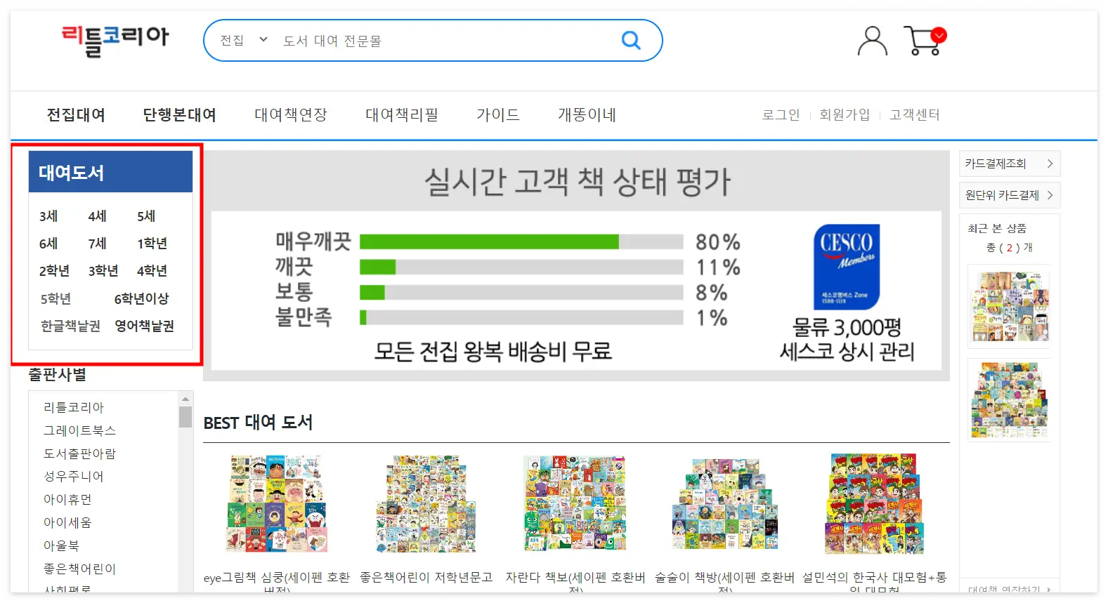 리틀코리아는 출판사별로 책을 많이 가지고 있고 책 대여 시 집으로 배달하고 픽업까지 하기 때문에 편리해요. 리틀코리아 책은 학년별로 볼 수 있어요. 3세부터 6학년까지 연령에 따른 책 선택이 가능해요.
