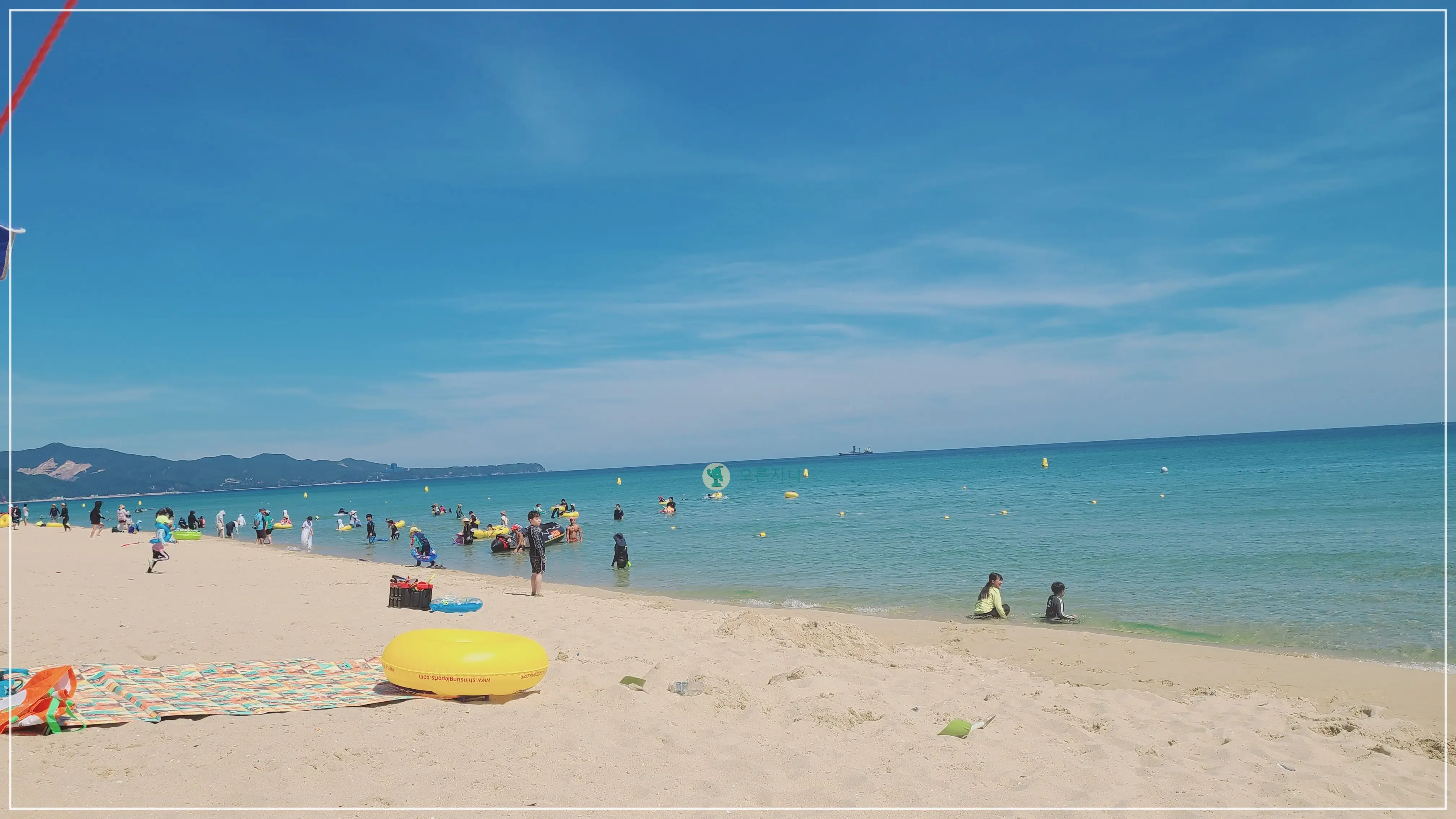 망상해수욕장은 바다가 얕고 물이 깨끗해요. 또한 해병대에서 안전과 해파리 모두 책임지고 관리해주고 있어서 아이들이 놀기에 너무 좋은데 한섬과 김추 대비 해파리가 많아요. 도착 하자마자 3마리...