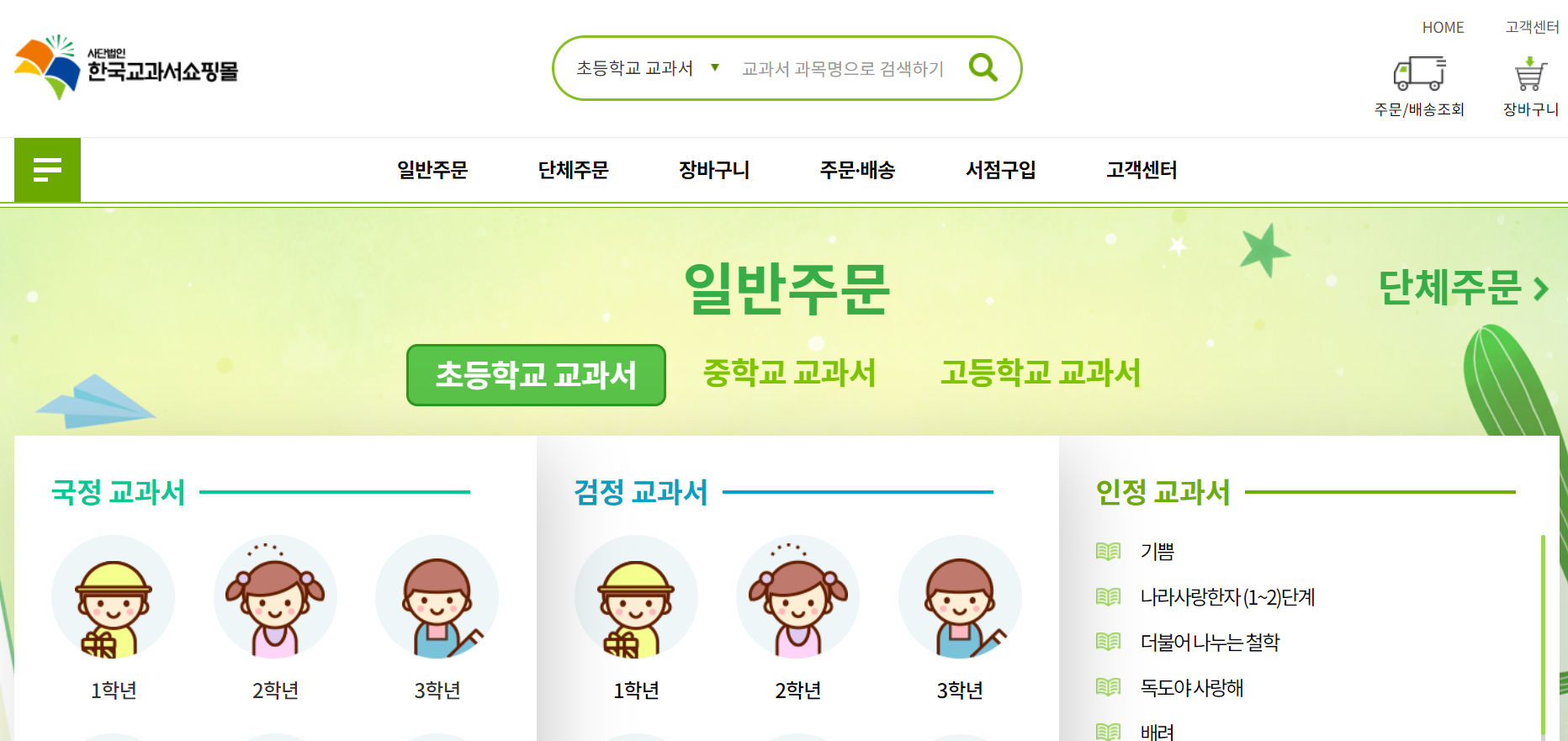 한국교과서 협회 쇼핑몰에서는 초등학생, 중학생, 고등학생의 국정, 검정, 인정 교과서를 구입